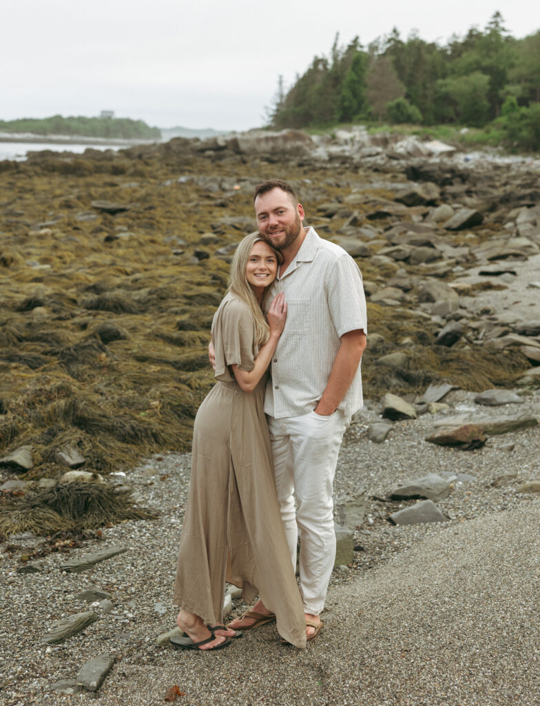From the very beginning, this session felt personal. It wasn’t about posing or checking off photo locations — it was about spending time together in a place that means something. Salt air, open water, their dog along for the ride… it was Maine in the best possible way.